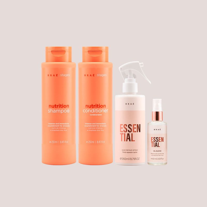 Kit Stages Nutrition Shampoo e Condicionador 250ml + Essential Fluido Reparador + Essential Oil